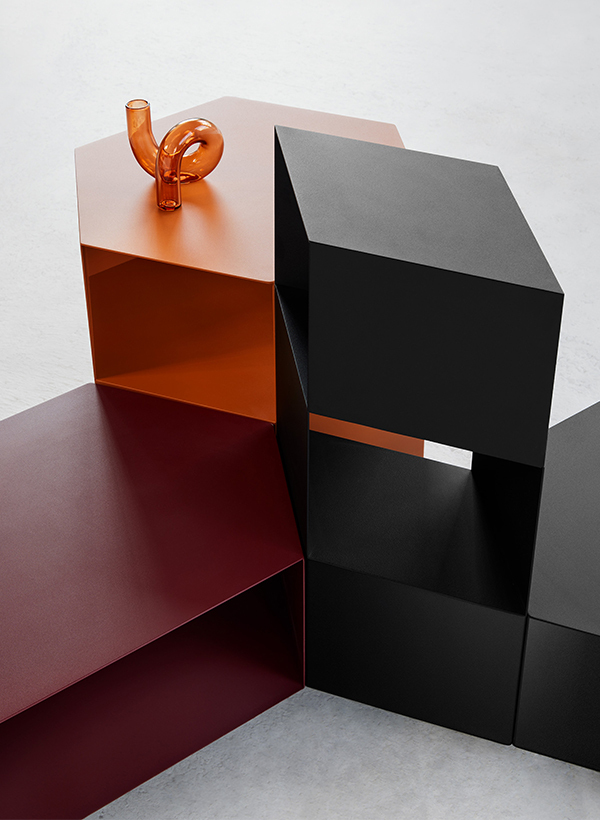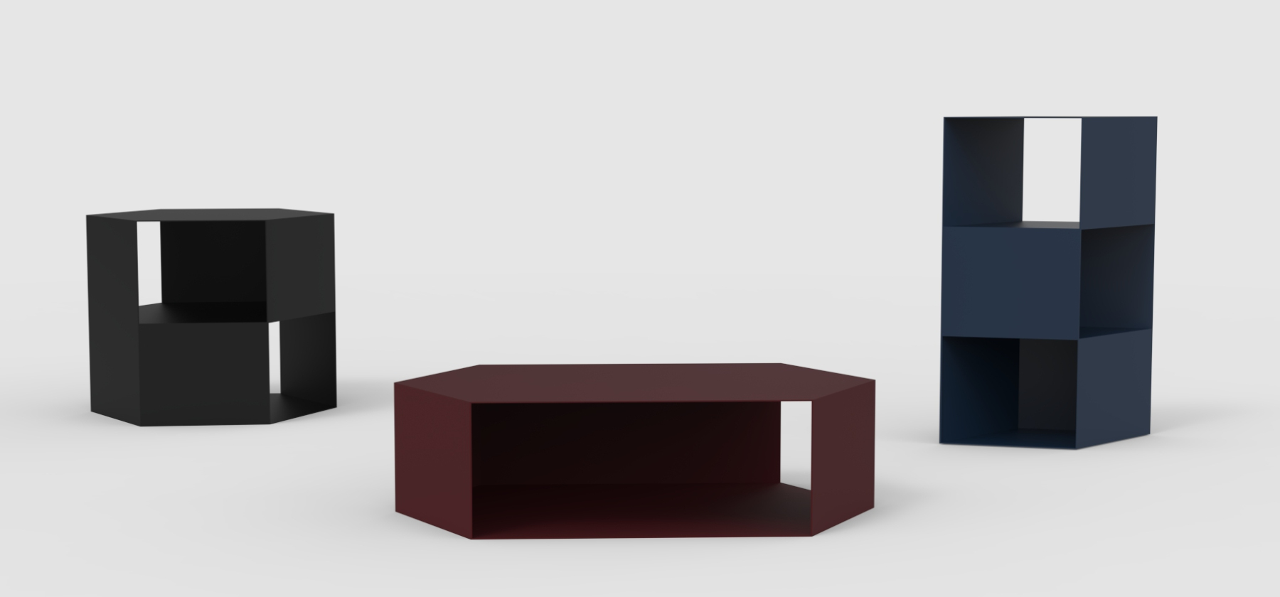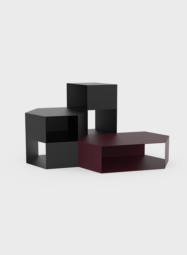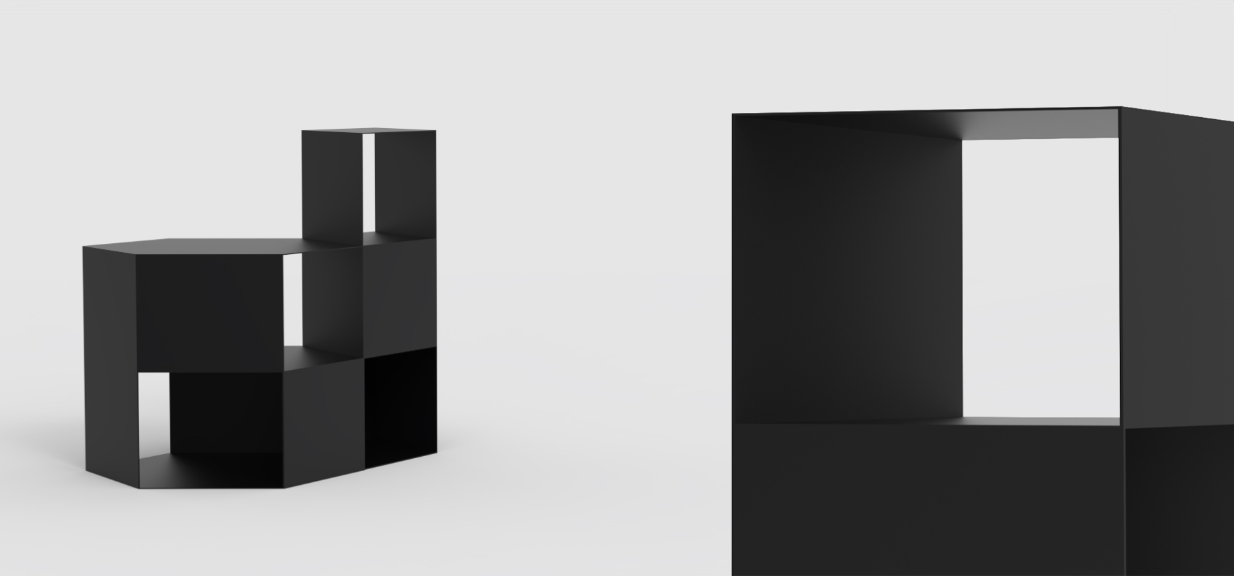 I've created a simple yet intriguing design, full of character and functionality. This table is visually lightweight and easily adapts to its purpose and the space it occupies. It can serve as the main element of your arrangement or complement it. The table's structure is hollow inside, which allowed me to add shelves for users to store books, magazines, or other small items. Removing the walls enables light to permeate the structure, adding charm and character to it. These tables are modular and can be used as building blocks for larger sets. Their functionality is not predefined; it's up to the user to decide how to use them and give them a purpose.