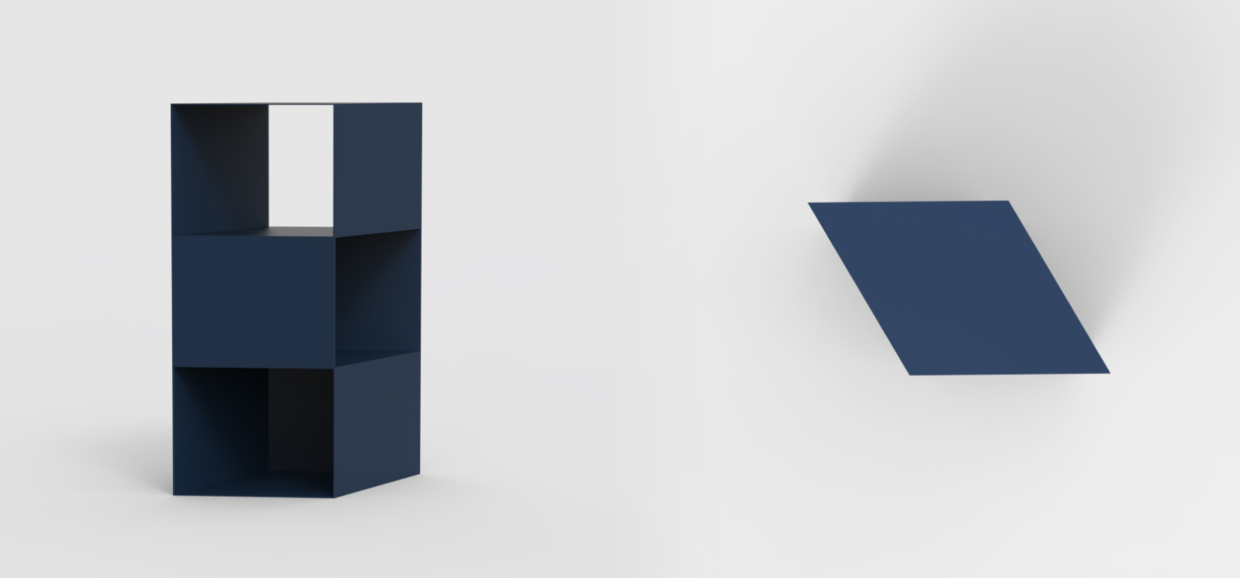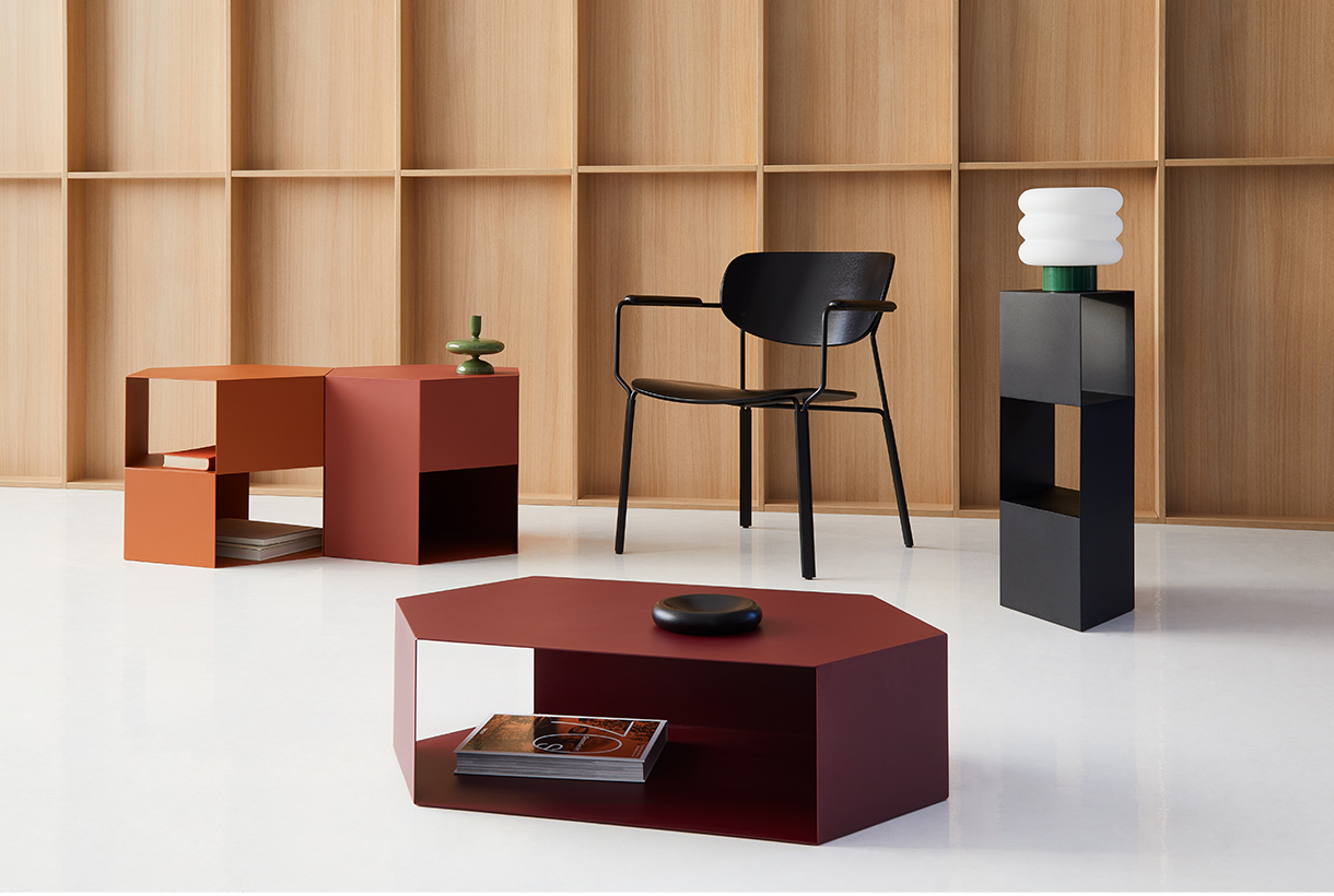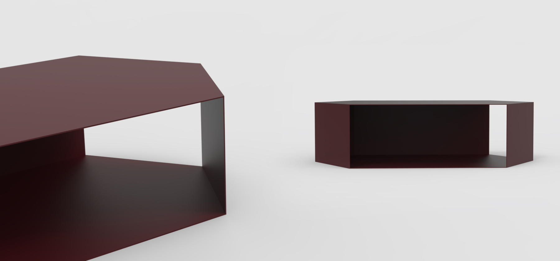I've created a simple yet intriguing design, full of character and functionality. This table is visually lightweight and easily adapts to its purpose and the space it occupies. It can serve as the main element of your arrangement or complement it. The table's structure is hollow inside, which allowed me to add shelves for users to store books, magazines, or other small items. Removing the walls enables light to permeate the structure, adding charm and character to it. These tables are modular and can be used as building blocks for larger sets. Their functionality is not predefined; it's up to the user to decide how to use them and give them a purpose.