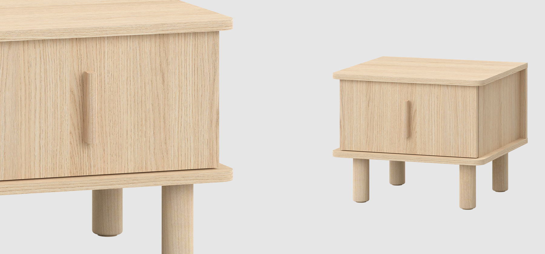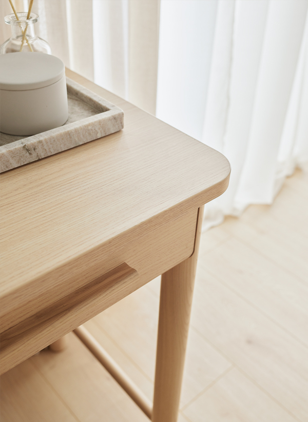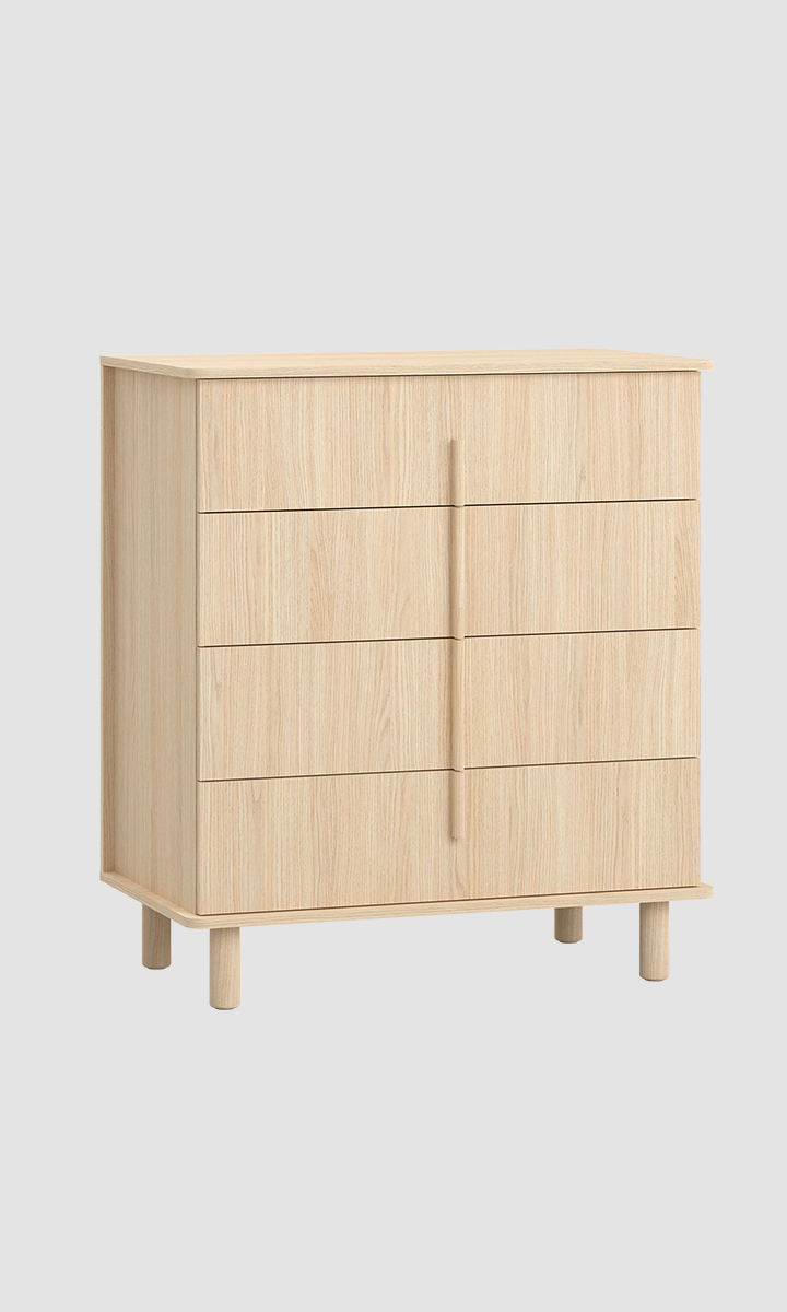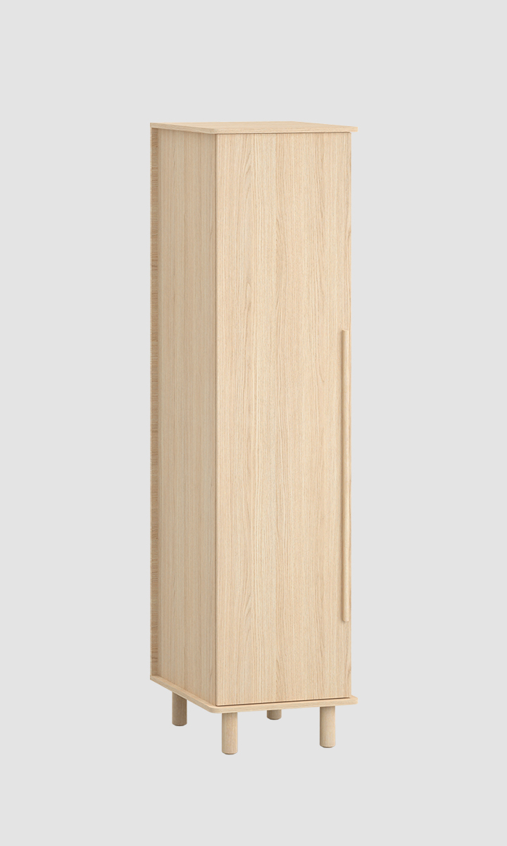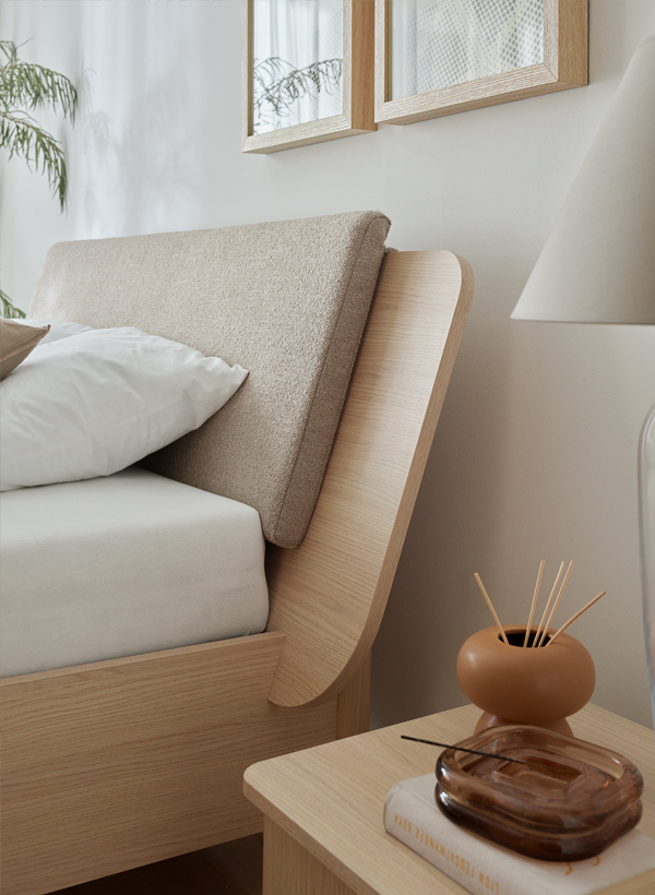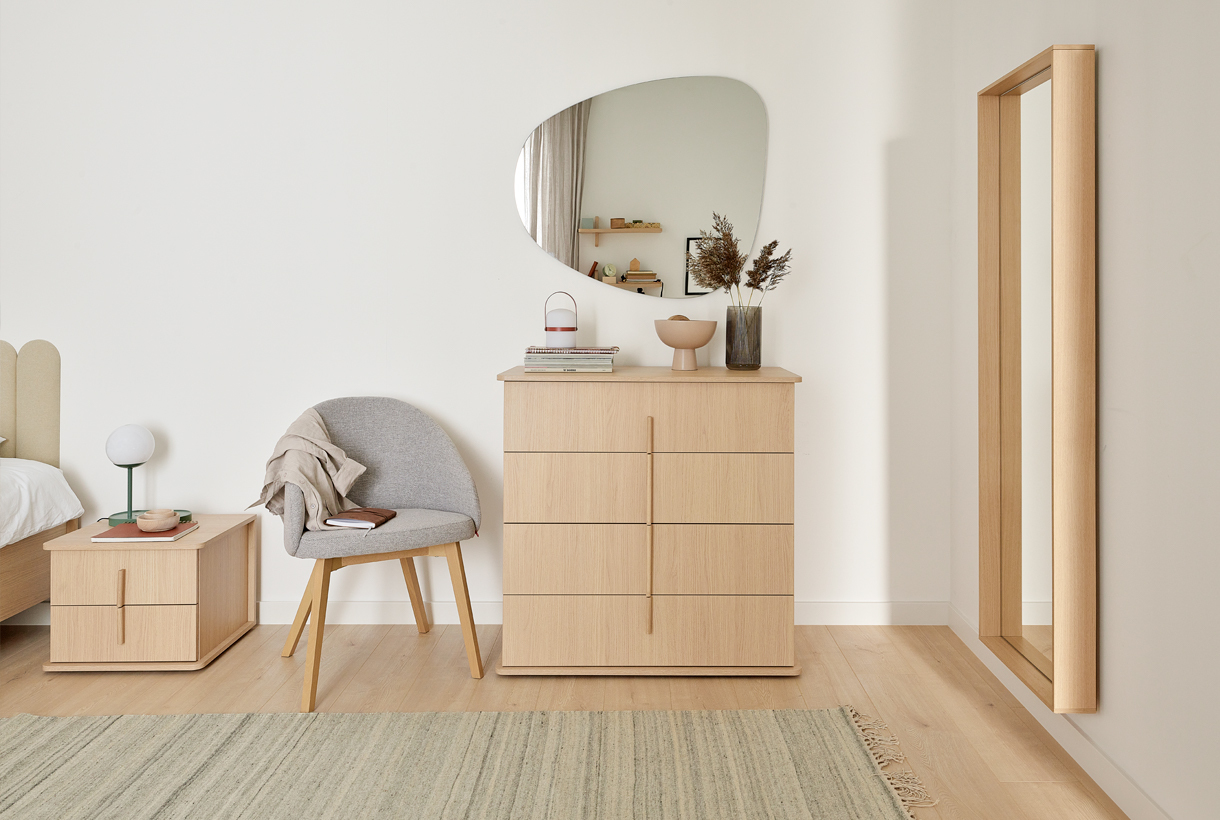 While designing the OMM collection, I merged two closely related styles - Japanese and Scandinavian. Their essence has been remixed and adapted to our context. Details crafted from solid wood, such as handles or legs, impart a great deal of homely warmth to the furniture and introduce a sense of harmony into the interior. Furniture with wooden elements is a choice for years to come. Oak, rounded handles are pleasant to the touch, and sturdy, curved legs give OMM lightness and a unique character. For this collection, we opted for a harmonious, serene wood grain and a light, natural hue. The rounded wooden elements endow OMM with subtlety and a distinct character.dirimage-carousel