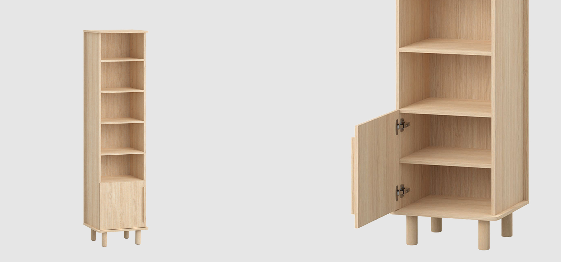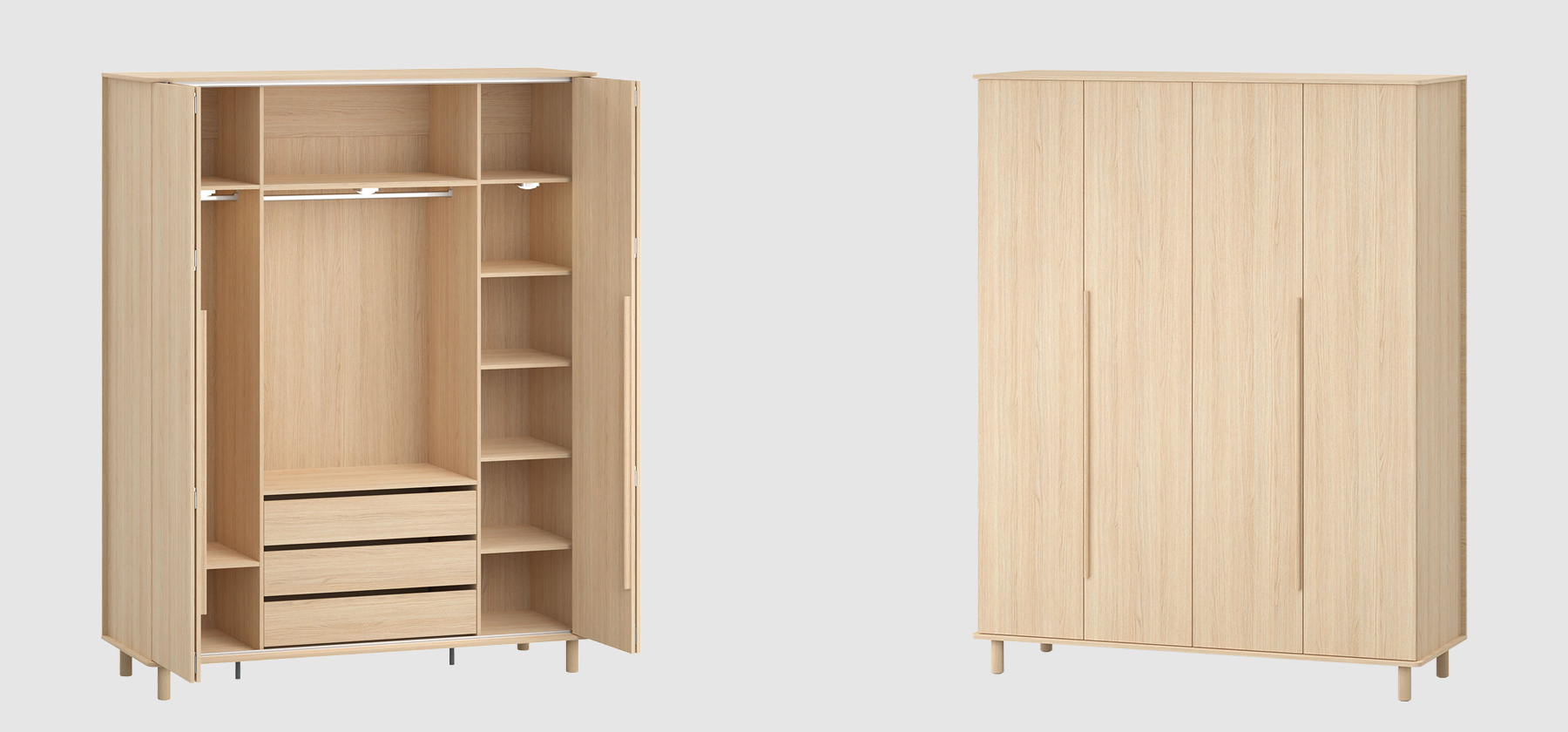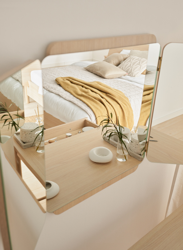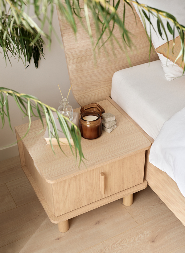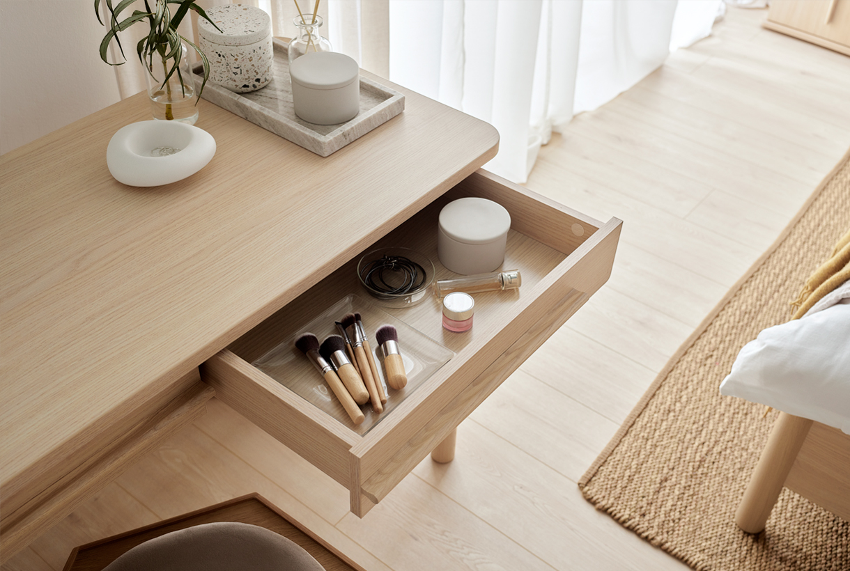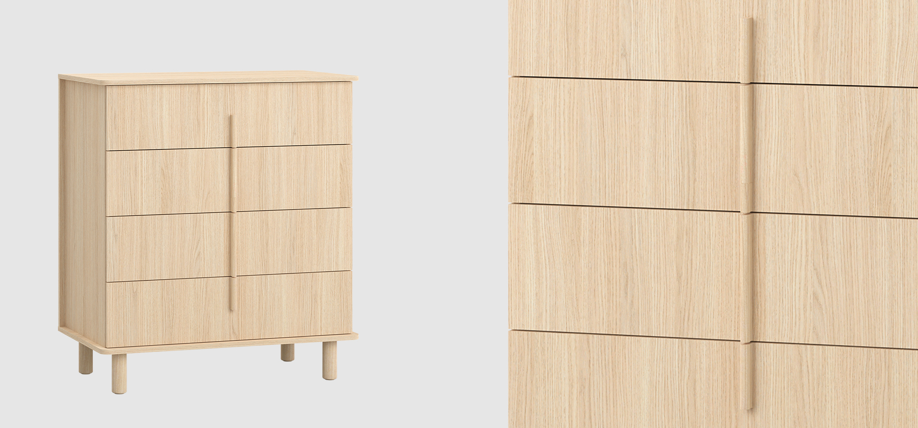 While designing the OMM collection, I merged two closely related styles - Japanese and Scandinavian. Their essence has been remixed and adapted to our context. Details crafted from solid wood, such as handles or legs, impart a great deal of homely warmth to the furniture and introduce a sense of harmony into the interior. Furniture with wooden elements is a choice for years to come. Oak, rounded handles are pleasant to the touch, and sturdy, curved legs give OMM lightness and a unique character. For this collection, we opted for a harmonious, serene wood grain and a light, natural hue. The rounded wooden elements endow OMM with subtlety and a distinct character.dirimage-carousel